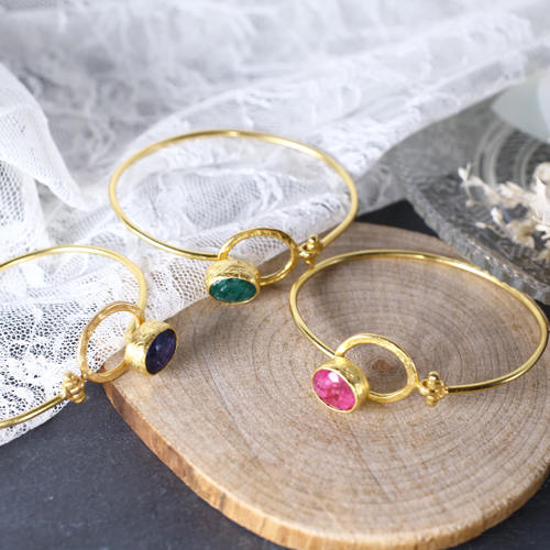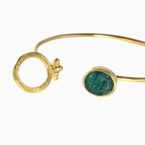 トルコの伝統的なデザインを現代に合わせて制作しており、独特なデザインが魅力的なアンティーク・ジュエリーです。トップには美しい輝きを魅せる天然石エメラルドを仕様。ヒーリング効果があり心を癒してくれ、穏やかな気持ちを取り戻す効果があるとも言われております。細身のバングルは腕を細く長くみせてくれる効果があり、女性らしい美しさを引き出してくれます。ファッション性にも優れており、どんなファッションにも合わせやすく腕まわりのさりげないワンポイントにピッタリです!飽きの来ないオシャレなデザインなので、毎日でも身に着けたくなるアイテム!リングや時計、デザイン違いのバングルなど様々なパターンの重ね着けもお楽しみいただけます。華奢なデザインが、エメラルドの輝きでリッチで華のある印象に♪自分へのご褒美やプレゼントにもおススメです。プレゼント包装も無料で対応しております★