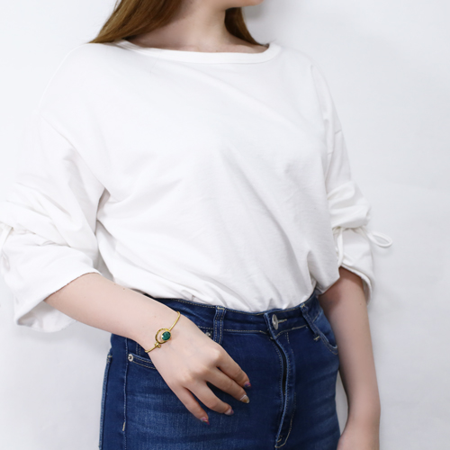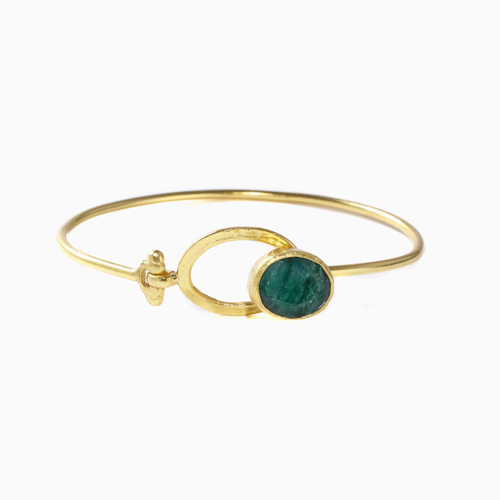 真鍮 22金 トルコ製 アンティーク調 エメラルド バングル 5670-BS22
