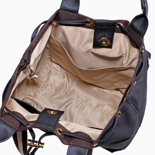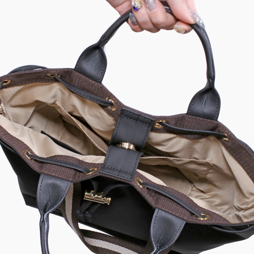 撥水加工を施しており、アウトドアなどのレジャーに便利な2wayトートバッグです☆各2色、ブラック・ベージュからお選びいただけます!ハンドバッグや口開きを絞れば巾着にも♪ファッションの幅が広がります。贈り物にもおすすめです!