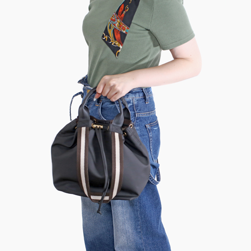 ハンドバッグや口開きを絞れば巾着にも♪