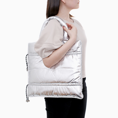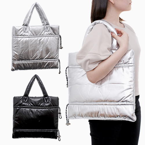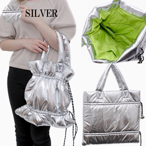 形が変わる2wayバッグが登場☆ブラックとシルバーの2カラーご用意いたしました!メタリックなデザインがが大人お洒落で、長財布も入れれるお出かけに最適のサイズ感!素材にはポリエステルを使っており、見た目より軽く、お出かけに最適です☆横の紐を絞ると形が変わる2way仕様! プレゼントにもおすすめです!※プルダウンにてご希望のカラーを必ずご選択ください。