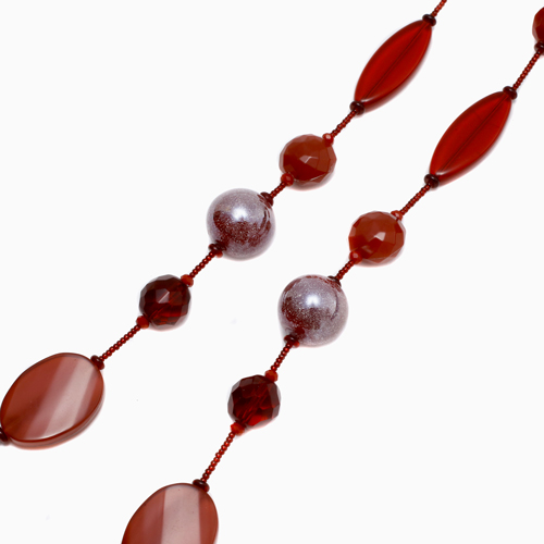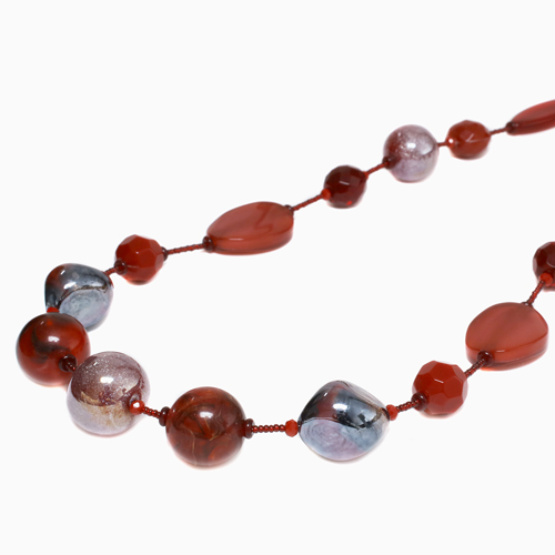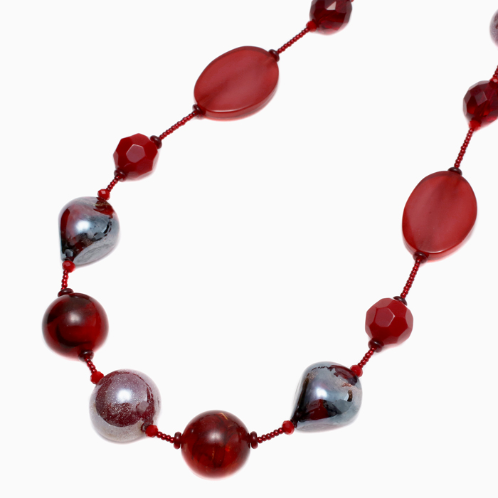 イタリアの最先端ファッションの都「ミラノ」。そこで活躍するジュエリーデザイナーのアヴェ・テッタマンティ。ベニスの熟練職人によるベネチアンガラスを使い、洗練されたデザインセンスとイタリア人ならではの色使いを持ち合わせ、イタリアはもちろん世界中の大人の女性たちを魅了しています。彼女の作品は決して派手すぎずそれでいて絶対的な存在感があり、どんな服装にもコーディネートしやすいように考えられています。世界的に人気のシングルタイプチェーンをレッド系でまとめ上げたセンスの良い上品でクールな逸品です。ベネチアンガラス、合金、樹脂を絶妙なバランスで使い、ボリューム感と軽い着け心地を実現。 特別な日のプレゼントにもぴったりです。※数量限定の商品ですので、売り切れの際はご了承ください。 手作りのため、パーツの配列、配色、留具の仕様が写真と若干異なる場合がございます。ご了承下さい。