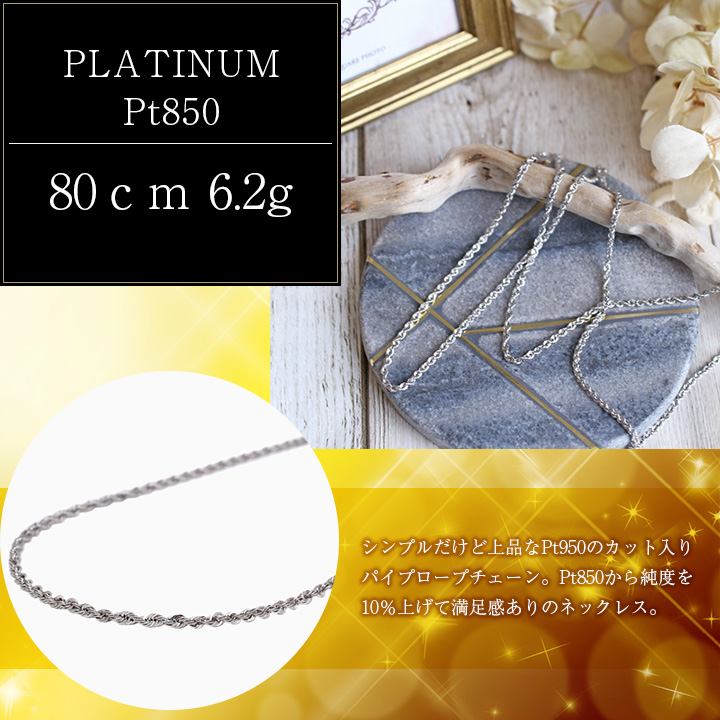 | 製品名: | プラチナ950 Pt950 パイプロープ ネックレス 80cm 5.8g 6054-NM24 |