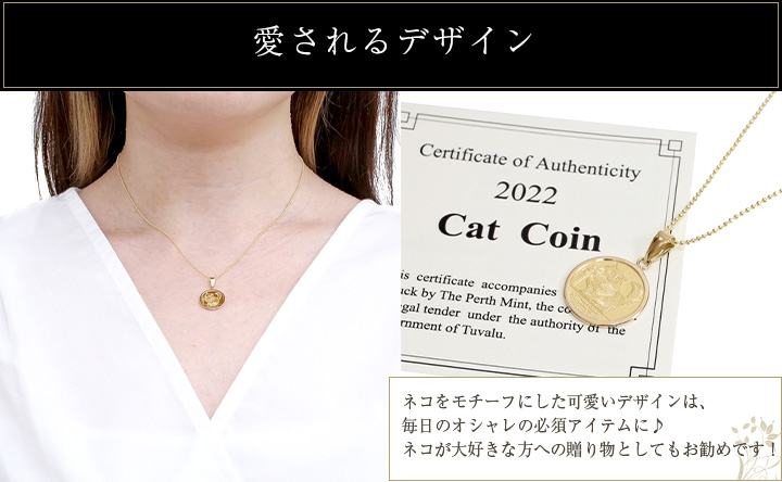 毎日のオシャレにどんなスタイルにも合わせられるネコのコインペンダントは、服装、シーンを選ばずにお洒落を楽しめます。 |