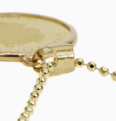 | 素材 | ・コイン(24金 1/25オンス約1.2g) ・枠(18金) ・チェーン(シルバー925ゴールド仕上げ) |