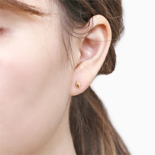 ミニサイズが可愛いダイヤ型ピアスが登場! 肌馴染みの良いイエローゴールドで素肌まで綺麗に魅せてくれ、着けるだけで華やかさがUPします。 小さくても耳元での存在感は抜群で、 着ければとっても可愛い印象に。どんなスタイルにも合わせやすいので、普段づかいのジュエリーとしても、大活躍すること間違い無し! 素材にこだわったシンプルなピアスは、流行や年齢に関係なく、きっと長く、大事にお使い頂けます。 他のピアスとの重ね着けにもちょうど良く、アクセサリーのおしゃれの幅も広がります。また、ラッピングも無料で対応しておりますので、プレゼントにもピッタリ!