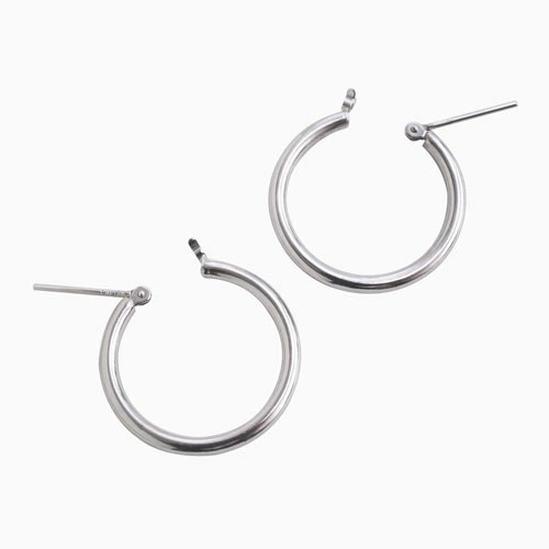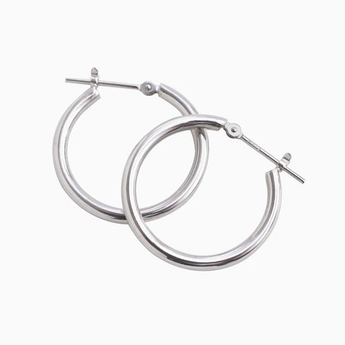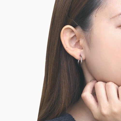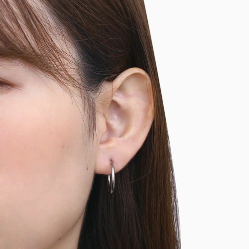 シンプルで定番のかたち!フープピアスが登場。 肌馴染みの良いホワイトゴールドで素肌まで綺麗に魅せてくれ、着けるだけで華やかさがUPします。 シーン、ファッション、ヘアースタイルを選ばず、 ベーシックで程よい存在感なので コーデに困ったらこのピアスを付ければ間違いなし! キャッチレスなので着脱しやすいのもポイントです☆ 飽きることのないシンプルなデザインは、流行や年齢に関係なく、きっと長く、大事にお使い頂けます。 他のピアスとの重ね着けにもちょうど良く、アクセサリーのおしゃれの幅も広がります。 また、ラッピングも無料で対応しておりますので、プレゼントにもピッタリ!