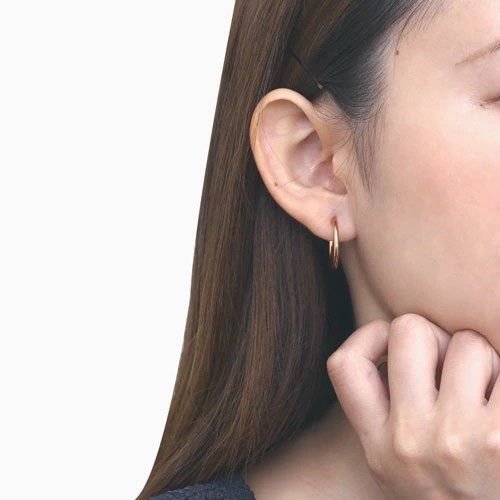 シンプルで定番のかたち!フープピアスが登場。 肌馴染みの良いピンクゴールドで素肌まで綺麗に魅せてくれ、着けるだけで華やかさがUPします。 シーン、ファッション、ヘアースタイルを選ばず、 ベーシックで程よい存在感なので コーデに困ったらこのピアスを付ければ間違いなし! キャッチレスなので着脱しやすいのもポイントです☆ 飽きることのないシンプルなデザインは、流行や年齢に関係なく、きっと長く、大事にお使い頂けます。 他のピアスとの重ね着けにもちょうど良く、アクセサリーのおしゃれの幅も広がります。 また、ラッピングも無料で対応しておりますので、プレゼントにもピッタリ!