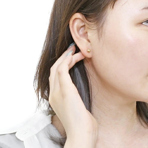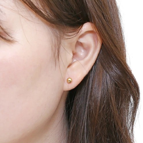 シンプルで定番のデザイン!ボールピアスが登場。 肌馴染みの良いイエローゴールドで肌なじみも良く、 素肌まで綺麗に魅せてくれ、着けるだけで華やかさがUPします。 シーン、ファッション、ヘアースタイルを選ばず、 ベーシックで程よい存在感なので コーデに困ったらこのピアスを付ければ間違いなし! シリコンキャッチ付きでしっかり装着できて安心☆ 飽きることのないシンプルなデザインは、 流行や年齢に関係なく、きっと長く、大事にお使い頂けます。 他のピアスとの重ね着けにもちょうど良く、 アクセサリーのおしゃれの幅も広がります。 また、ラッピングも無料で対応しておりますので、プレゼントにもピッタリ!