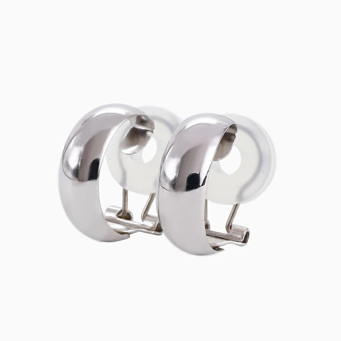 シンプルで定番のデザイン! リングタイプイヤークリップが登場。 艶感のある大人っぽいデザインで、 肌なじみのいいプラチナのイヤークリップは 普段の装いに華やかさをUPします。 シーン、ファッション、ヘアースタイルを選ばず、 ベーシックで程よい存在感なので コーデに困ったらこのピアリングを付ければ間違いなし! クリップタイプの開閉でシリコンがついているので 長時間着けていても耳への負担を軽減してくれます☆ 飽きることのないシンプルなデザインは、 流行や年齢に関係なく、きっと長く、大事にお使い頂けます。 他のイヤリングやカフス等との重ね着けにもちょうど良く、 アクセサリーのおしゃれの幅も広がります。 また、ラッピングも無料で対応しておりますので、プレゼントにもピッタリ!