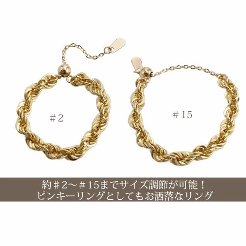 | 仕様 | ・フリーサイズ(2~15対応) 大きなサイズの場合はアズキチェーン部分が指の裏側で見えますのでご了承ください。 |