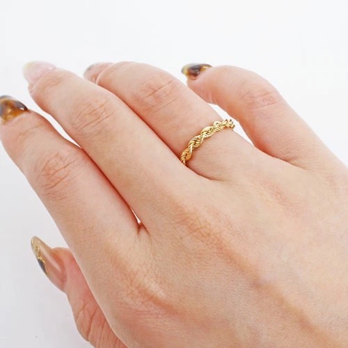 イタリアで人気のデザイン、 パイプロープデザインリングが登場しました! 素材には18金を使い、 デザイン性はもちろん素材までこだわったリングです。 フォーマルにはもちろん、普段のお洒落に合わせやすい☆ スライド式アジャスターで約#2~#15までと サイズのふり幅も広くピンキーリングとしてもかわいい! サイズがわからない方へのプレゼントにもお勧めです。 地金が高くなっている今、18金を使用したロープ・デザインリングが、送料無料・消費税込 でこの価格は大変お買い得です!!