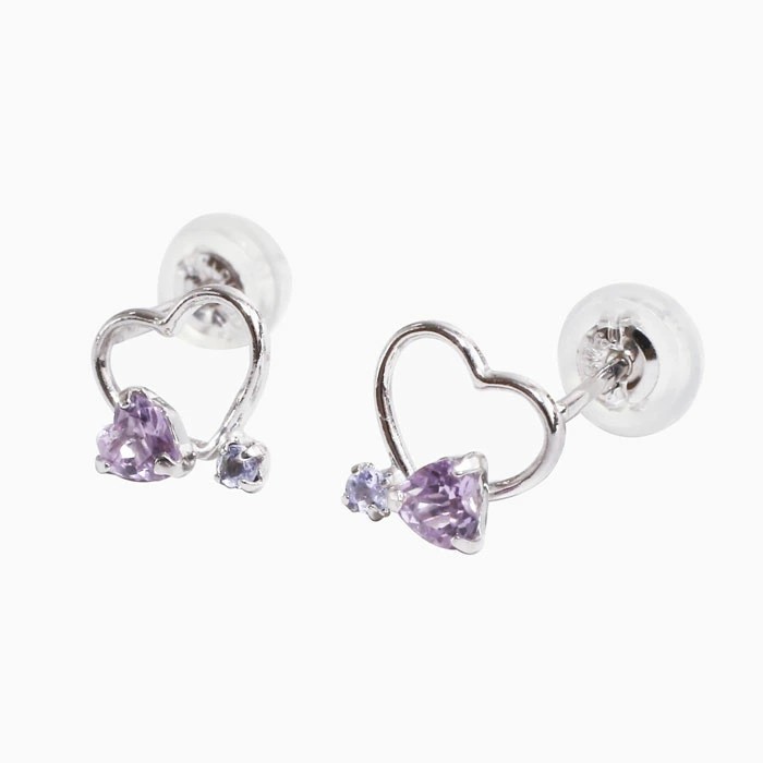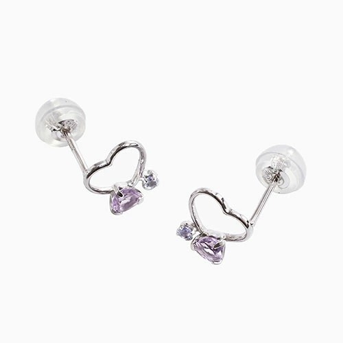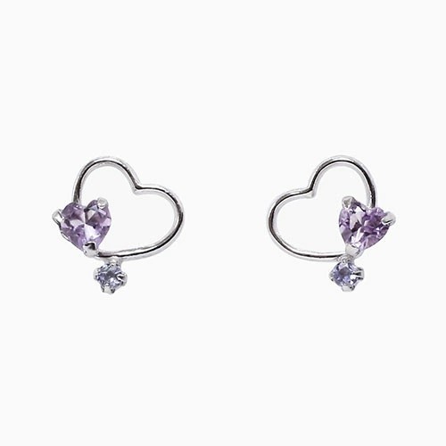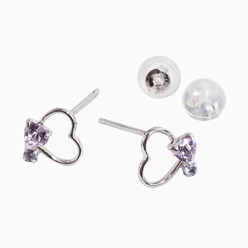18金 ホワイトゴールド アメジスト ピアス オープンハート 6213-UK24