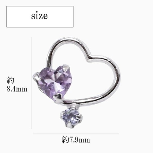 ミニサイズが可愛いオープンハートピアスが登場! 肌馴染みの良いホワイトゴールドで素肌まで綺麗に魅せてくれ、着けるだけで華やかさがUPします。 ホワイトゴールドにアメジストをセットし、 控えめだけど上品で大人っぽい印象に。 どんなスタイルにも合わせやすいので、普段づかいのジュエリーとしても、大活躍すること間違い無し! 素材にこだわったシンプルなピアスは、流行や年齢に関係なく、きっと長く、大事にお使い頂けます。 他のピアスとの重ね着けにもちょうど良く、アクセサリーのおしゃれの幅も広がります。 女性に人気の小さめピアスはプレゼントにも◎