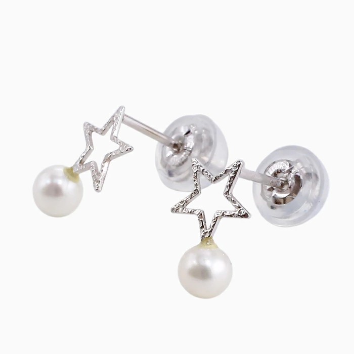 10金 K10WG ピアス シリコンキャッチ式 スター パール揺れるピアス 6214-UK24