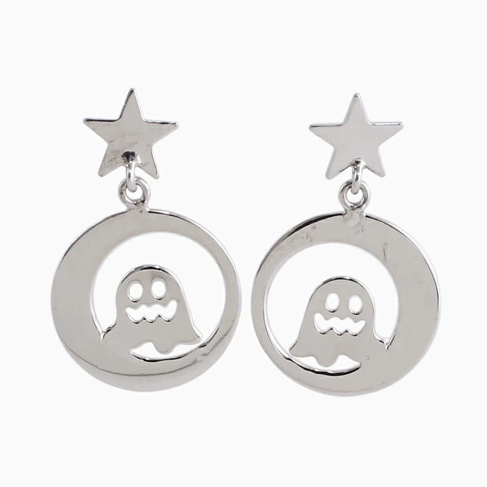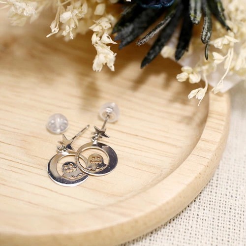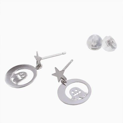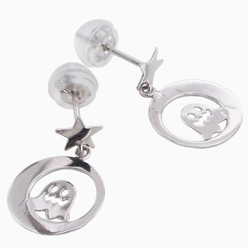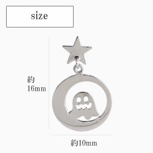 ミニサイズが可愛い揺れる星とお化けモチーフピアスが登場! 肌馴染みの良いホワイトゴールドで素肌まで綺麗に魅せてくれ、着けるだけで華やかさがUPします。 月に乗っているようなかわいいおばけが上品に揺れる可愛いデザインはどんなスタイルにも合わせやすいので、普段づかいのジュエリーとしても、大活躍すること間違い無し! 素材にこだわったシンプルなピアスは、流行や年齢に関係なく、きっと長く、大事にお使い頂けます。 他のピアスとの重ね着けにもちょうど良く、アクセサリーのおしゃれの幅も広がります。 女性に人気の小さめピアスはプレゼントにも◎