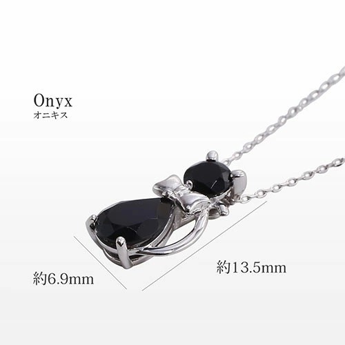 美しく煌めくネコモチーフのペンダントが登場! 天然石のオニキスを組み合わせており、10金ホワイトゴールド素材で仕上げております。 オニキスは「 成功・厄除け・夫婦の幸福 」の石言葉があり、何かに挑戦するとき持ち主に自信と決断力を与え、前進させてくれるとされています。 どんなスタイルにも合わせやすいので、普段づかいのジュエリーとしても、大活躍すること間違い無し! 素材にこだわったシンプルなペンダントは、流行や年齢に関係なく、きっと長く、大事にお使い頂けます。他のチェーンとの重ね着けにもちょうど良く、アクセサリーのおしゃれの幅も広がります。また、ラッピングも無料で対応しておりますので、プレゼントにもピッタリ!