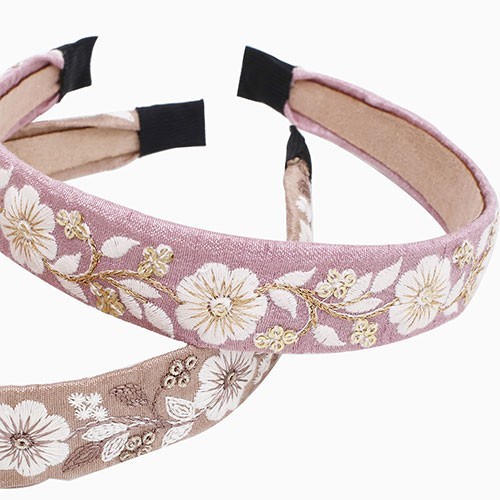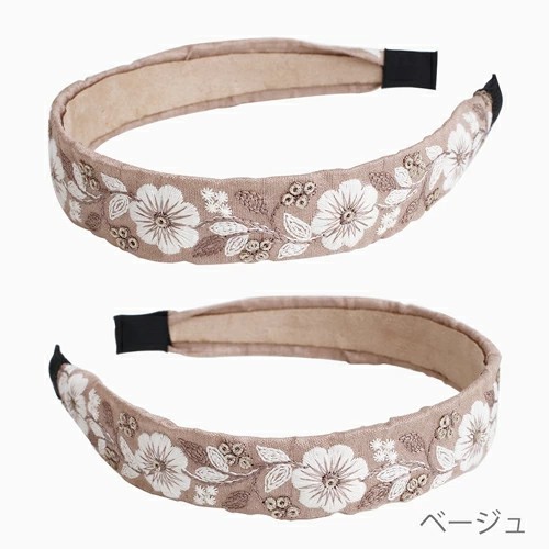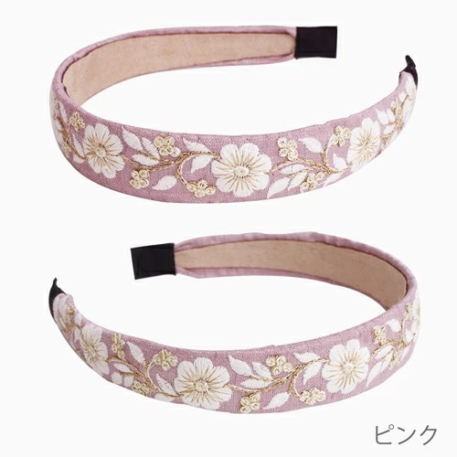 繊細なインド刺繍リボンの 大人かわいいカチューシャが登場! 可愛らしさと上品さをあわせ持つインド刺繍リボンは、 インド女性の象徴的な衣装「サリー」の 裾の装飾などに使われているもので、 繊細な刺繍やスパンコールが施された 色彩豊かなデザインが特徴です。 美しい色彩と独特のパターンが魅力的で、 華やかな刺繍がお顔回りをパッと明るく見せてくれます。 ロングヘアー・ミディアムヘアー・ショートヘアなど 様々なヘアスタイルに使うことができ、 瞬時にヘアスタイルを華やかに見せてくれます。 また、見た目からの重量感に反して、軽い着け心地! 髪をしっかりまとめてくれます★ 個人差もございますが、長時間の使用、締め付け等で 耳が痛くなる場合もございます。 無理のない程度にご使用下さい。 【ピンク】/【ベージュ】 の2カラーをご用意いたしました! ご希望のカラーを必ずお選びください。