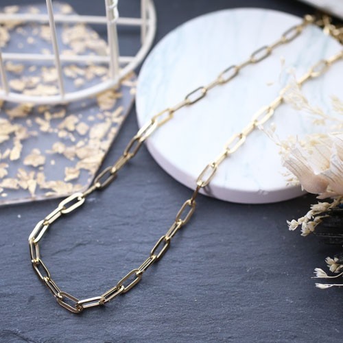 【受注生産品】イタリア製 18金 ペーパー クリップ 70cm ネックレス(スクエア・カット アズキ) 6237-MS24