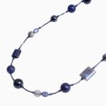 落ち着いたブルーの色合いでまとめ上げた上品でお洒落なネックレスは長さ97cmもあり、留具を外さずに装着でき忙しい朝にもお勧めです!