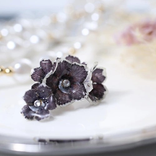 天然素材 ドライフラワー ネモフィラ 黒紫 お花 イヤーカフ イヤークリップ 6345-LL25