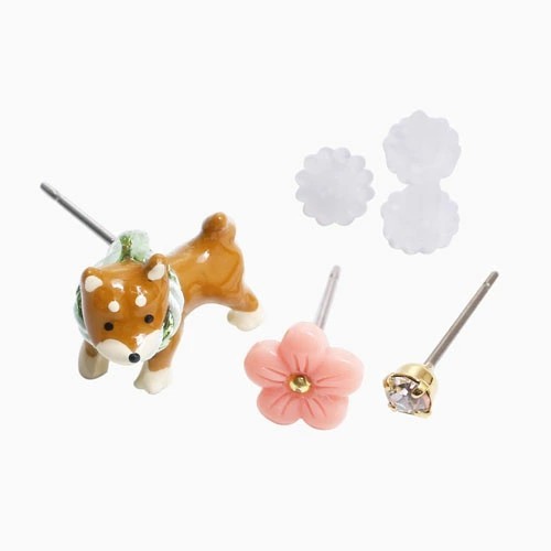 ピアス 樹脂ピアス 和風ピアス 柴犬 梅 一粒 3点セット 6356-GG25