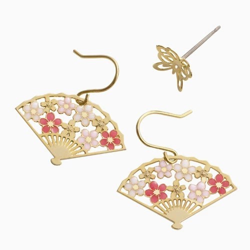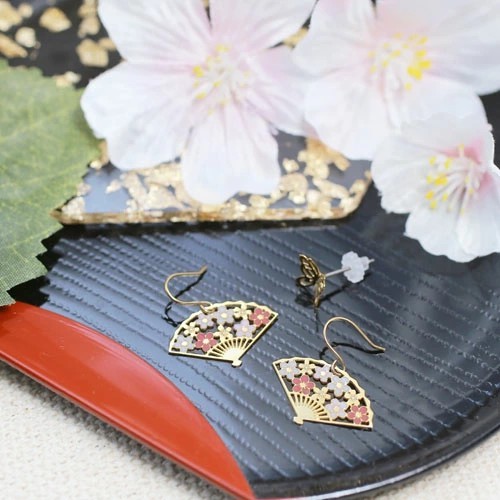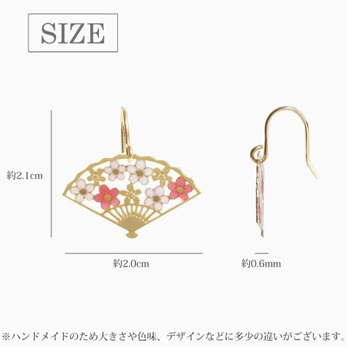 | サイズ | 【桜扇子】・約2.1cm×約2.0cm ・厚み/約0.6mm ・フック式ピアス 【蝶々】・約7.4mm×8.2mm ・スタッドピアス |