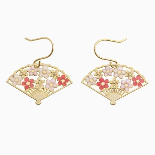 アートを身にまとう、お洒落な和風ピアスが登場☆ 日本に昔からあるモチーフを アクセサリーにした魅力あふれる逸品。 透かしの扇子と桜の模様がマッチした ゴールド仕様の上品なピアスです。 透かしの蝶々もついた3点セットなので つける組み合わせを変えたり、 ピアスの穴が複数あいている方は 扇子と蝶々を両方つけても◎ 浴衣や着物等の和服にはもちろん、 普段の装いに合わせてもかわいいピアスは プレゼントにもおススメです♪ ハンドメイドの為、まったく同じ柄は存在しない、 自分だけのピアスをお楽しみください。