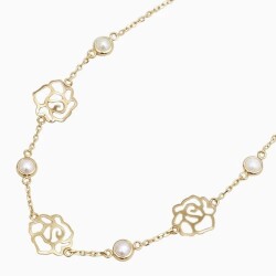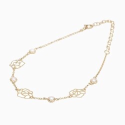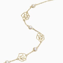 シンプルで上品なアズキチェーンに可愛いパールとバラモチーフをセットした大人ジュエリーです。
