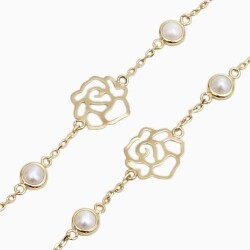10金イエローゴールドを贅沢に使用した 淡水パール&ゴールドブレスレット! バラをモチーフにした ボリューム感たっぷりのゴールドパーツを ステーションにセットしています。 チェーンは長さ約15cmから20cmまでの お好みの長さに調整可能な アジャスター式になっており、 なかなか見つけることのできない逸品です。 淡水パールを使った可愛いデザインに バラのモチーフでボリューム感を演出した仕様のブレスレットは、 どんな服装にも合わせやすく、 カジュアルはもちろんオフィススタイルや フォーマルなスタイルに合わせて頂いても素敵です!