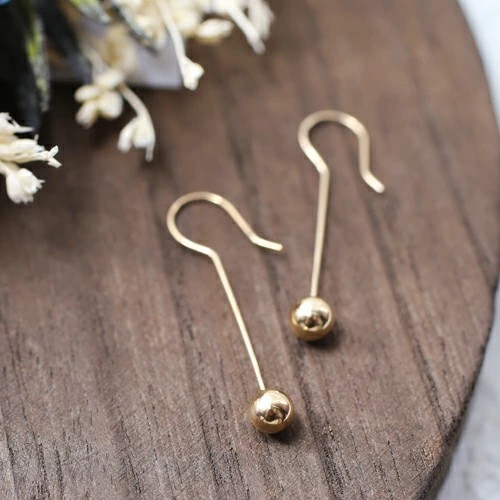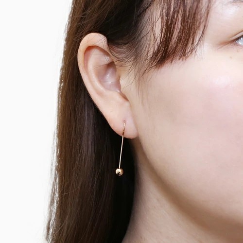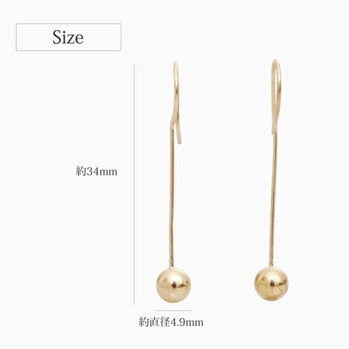 キャッチが無くてもしっかり固定される 10金のシンプルボールモチーフが大人可愛いピアス! 肌馴染みの良いゴールドで素肌まで綺麗に魅せてくれ、着けるだけで華やかさがUPします。 スタイリッシュなシルエットが上品なフック式スティックボールは、 どんなスタイルやシーンにも合わせやすく、普段づかいのジュエリーとしても大活躍すること間違い無し! 地金オンリーの可愛いピアスは、流行や年齢に関係なく、きっと長く、大事にお使い頂けます。 他のピアスとの重ね着けにもちょうど良く、アクセサリーのおしゃれの幅も広がります。 女性に人気のデザインピアスはプレゼントにもおススメです。