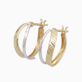 10金ツーカラーのカット入ダブルフープデザインが大人可愛いピアス!