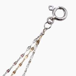 最高級素材である、プラチナ850と18金を惜しみなく使用した、高級感あふれる3連ブレスレット。 3本のペダルチェーンが織り成すランダムな輝きが大人っぽい上品さを演出。高級素材・K18とPt850のみでお作りしたペダルモチーフのデザインは、どんなスタイルにも合わせやすく、普段の装いをぐっとエレガントに引き立ててくれます。 プレート部分にはK18,Pt850の刻印が入っており、素材の純度が証明されています。 記念日やお祝いなどのプレゼントにもお勧めです!