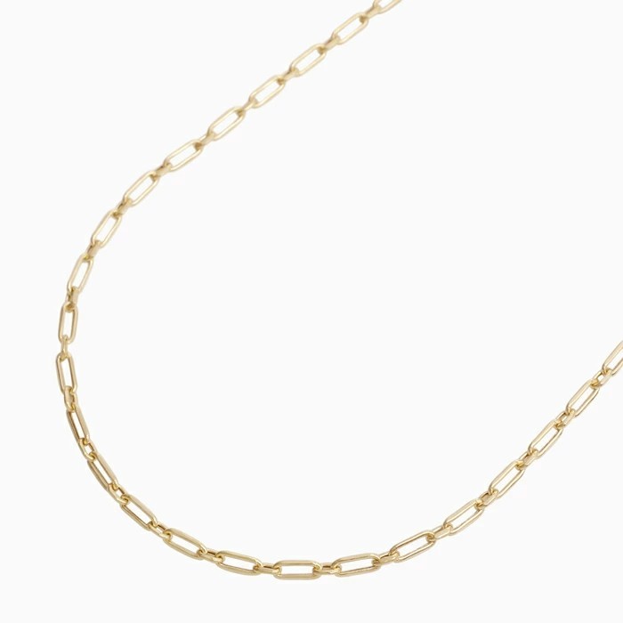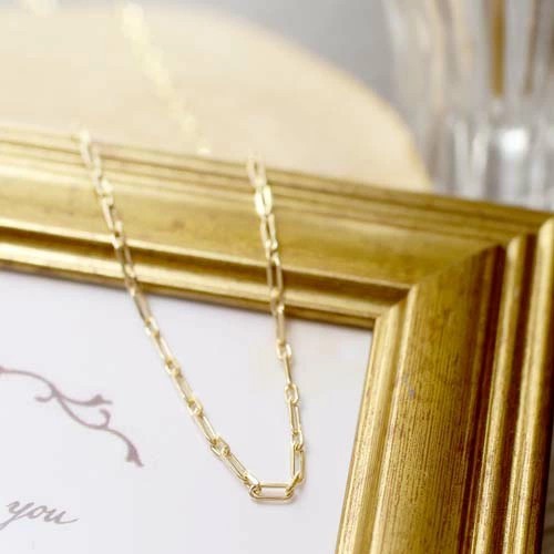 高級素材である、18金(K18)を惜しみなく使用した、有名ブランドC社が火をつけた世界的に人気のデザイン。繊細でシンプルなのに気品あふれるネックレス。イタリアならではの洗練されたデザインのペーパークリップネックレスは、日本製にはない細長いフラットS&Lのアズキタイプチェーンを組み合わせ、たくさんの輝く面を作り胸元を豪華に演出。