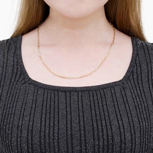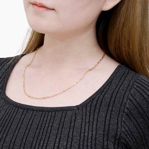 高級素材である、18金(K18)を惜しみなく使用した、有名ブランドC社が火をつけた世界的に人気のデザイン。繊細でシンプルなのに気品あふれるネックレス。 イタリアならではの洗練されたデザインのペーパークリップネックレスは、日本製にはない細長いフラットS&Lのアズキタイプチェーンを組み合わせ、たくさんの輝く面を作り胸元を豪華に演出。 50cmと男女兼用サイズで、デイリー使いからセミフォーマルまで幅広いシーンで大活躍間違いなし! 1本でも上品な存在感をアピールするのはもちろん、重ね着け用のチェーンとしてもお洒落をお楽しみいただけます♪ プレート部分には、「K18」の刻印が施されており、素材と品質の良さも証明されています。 高価な18金ゴールドをたっぷりと使用し、デザイン性にも評判の高い高品質ネックレスはプレゼントにもおススメです!