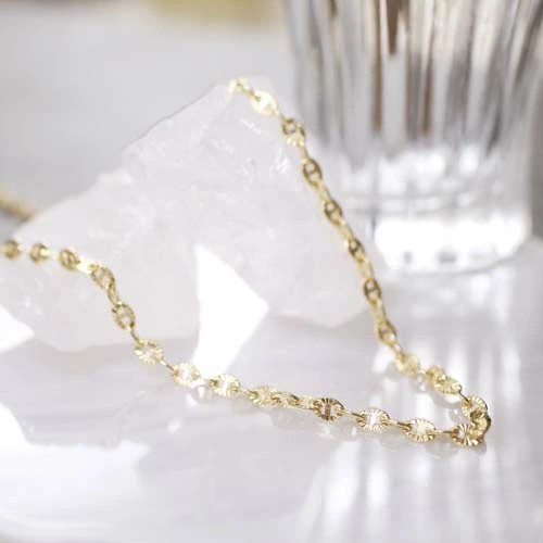 ※中空ホローの繊細なデザインチェーンですので無理に引っ張ったり、重いものを上にのせたりすると不良になる恐れがありますのでご注意ください。