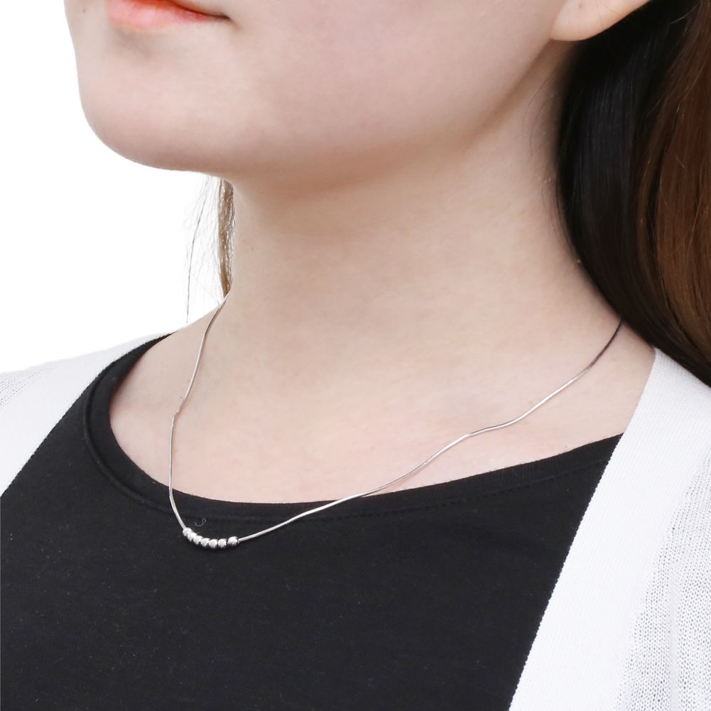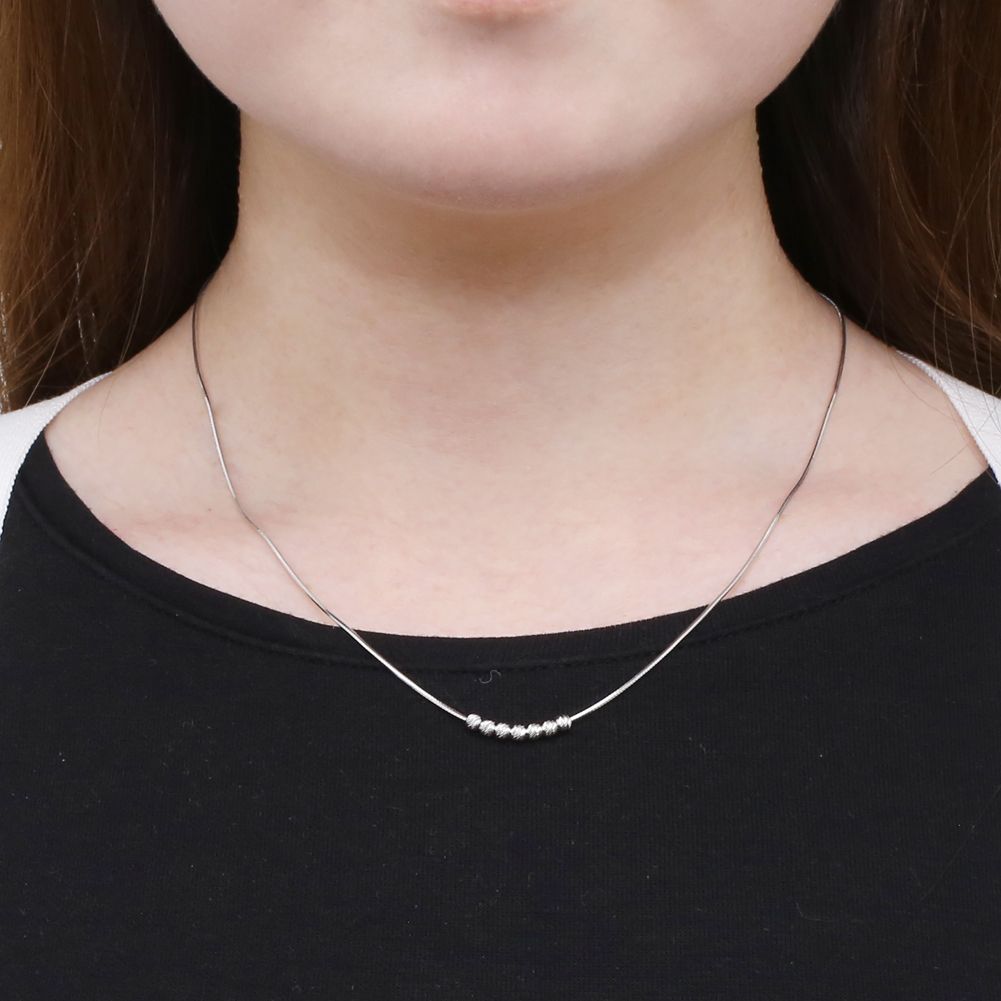 シルバーのしなやかなスネークチェーンのミラーボールネックレス。