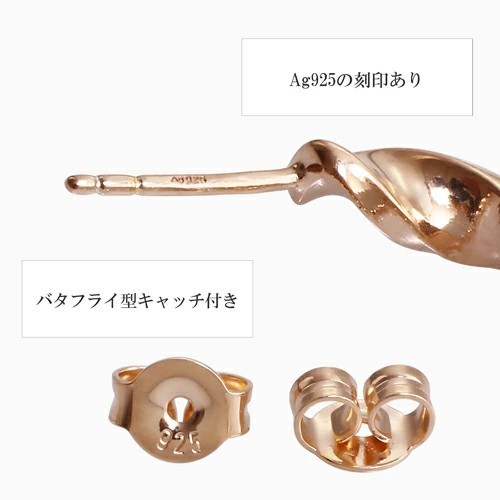 ドイツ製 シルバー SILVER SV925 ピンクゴールドカラー仕上げ ピアス 6416-AD25