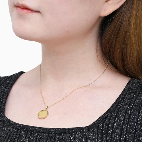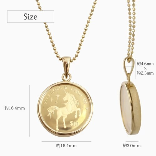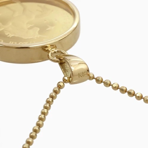 | 素材 | ・コイン(24金 1/20オンス約1.5g) ・枠(18金) ・チェーン(シルバー925ゴールド仕上げ) イタリア製カットボールチェーン ・長さ約45cm(アジャスター約5cm含む) ・留具は引輪式 ・保護ガラス |