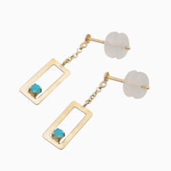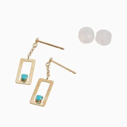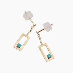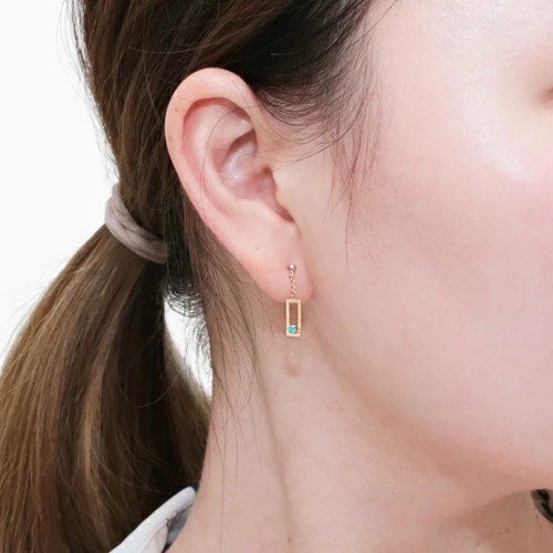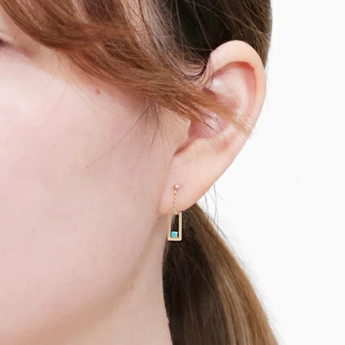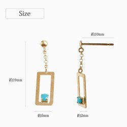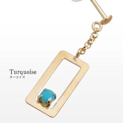 プチサイズが可愛い!上品に揺れる四角いタイプのピアスが登場! 肌馴染みの良いゴールドで素肌まで綺麗に魅せてくれ、着けるだけで華やかさがUPします。 ターコイズが上品に揺れる可愛いデザインは、 どんなスタイルにも合わせやすいので、普段づかいのジュエリーとしても、大活躍すること間違い無し! 素材にこだわったシンプルなピアスは、流行や年齢に関係なく、きっと長く、大事にお使い頂けます。 他のピアスとの重ね着けにもちょうど良く、アクセサリーのおしゃれの幅も広がります。 女性に人気の小さめピアスはプレゼントにもおススメです。