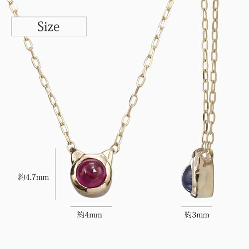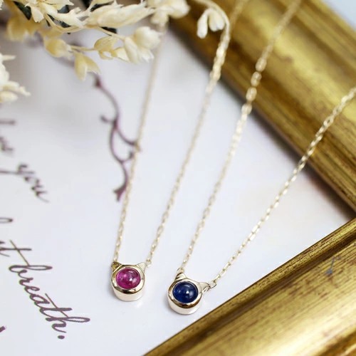 10金にルビーとサファイアを配した ネコモチーフの可愛いペンダントが登場! 裏面には可愛い足跡が施され、 細部にまでこだわった、 大人可愛いペンダントは、 ネコちゃん好きには嬉しいデザイン! ひとつ持っておくだけで重宝すること間違いなしの シンプルなペンダントは、流行や年齢に関係なく、 きっと長く、大事にお使い頂けます。 また、ラッピングも無料で対応しておりますので、 プレゼントにもピッタリ!