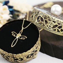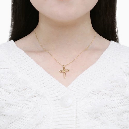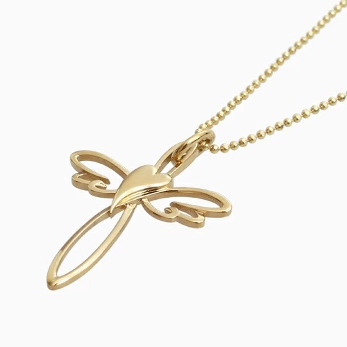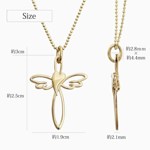 18金 K18 ゴールド ペンダント ネックレス ハート エンジェル クロス 6503-AD25