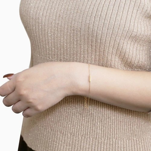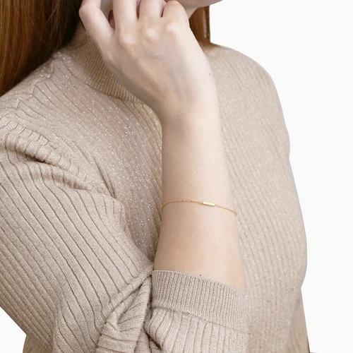 シンプルをコンセプトに、モダンなスティックパーツをセンターにセットした、18金イエローゴールドのお洒落なブレスレット!