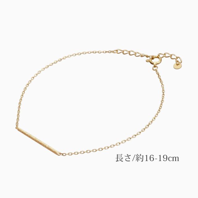 シンプルをコンセプトに、スターダスト仕上げのスティックパーツをセンターにセットした、18金イエローゴールドのお洒落なブレスレット! チェーンは長さ約16cmから19cmまでお好みの長さに調整可能なアジャスター式になっており、端の部分には可愛いチャームも付いています。 18金のゴールドだけを使ったスマートデザインに細く繊細なアズキチェーンが可愛らしさを演出したブレスレットは、どんな服装にも合わせやすく、カジュアルはもちろんオフィススタイルやフォーマルなスタイルに合わせて頂いても素敵です!