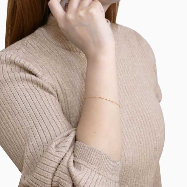 18金のゴールドだけを使ったスマートデザインに細く繊細なアズキチェーンが可愛らしさを演出したブレスレットは、どんな服装にも合わせやすく、カジュアルはもちろんオフィススタイルやフォーマルなスタイルに合わせて頂いても素敵です!