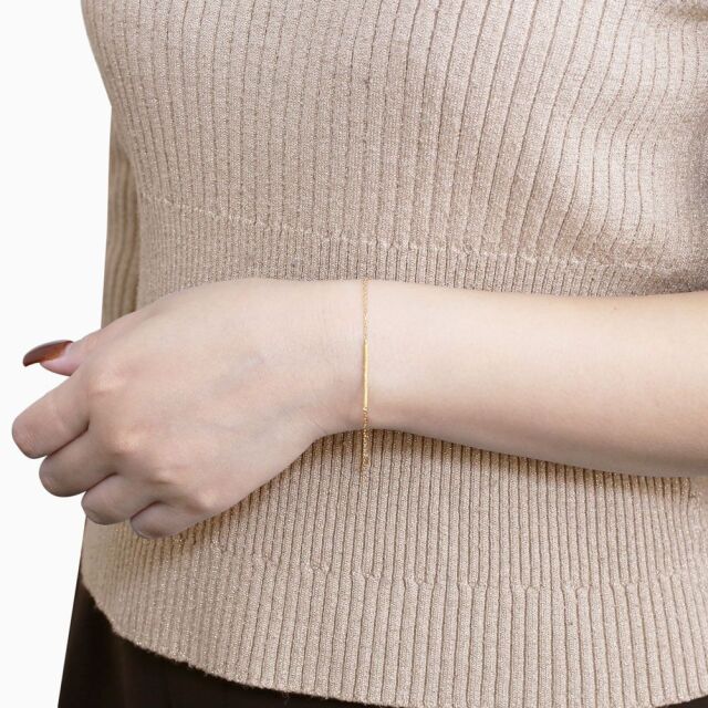 シンプルをコンセプトに、スターダスト仕上げのスティックパーツをセンターにセットした、18金イエローゴールドのお洒落なブレスレット!