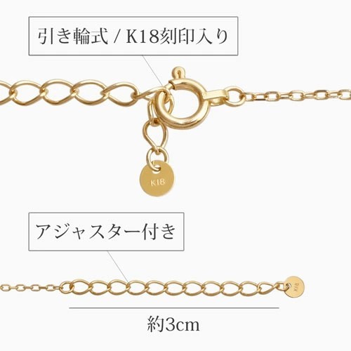 チェーンは長さ約16cmから19cmまでお好みの長さに調整可能なアジャスター式になっており、端の部分には可愛いチャームも付いています。
