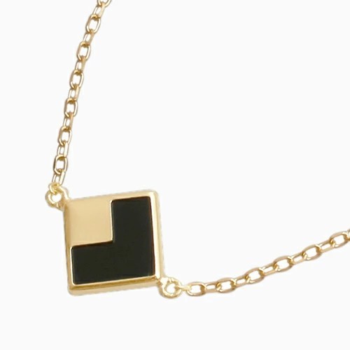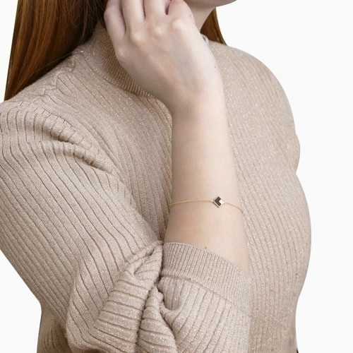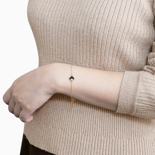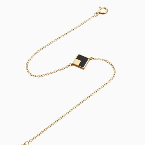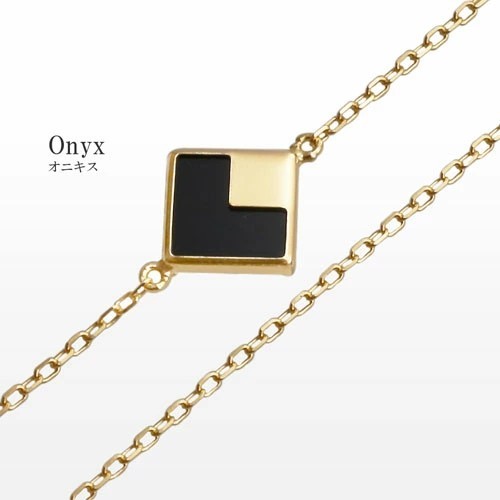 シンプルをコンセプトに、オニキスのスクエアパーツをセンターにセットした、18金イエローゴールドのお洒落なブレスレット!