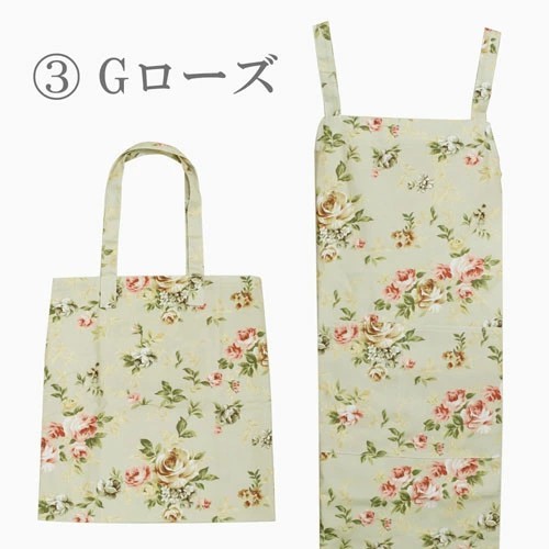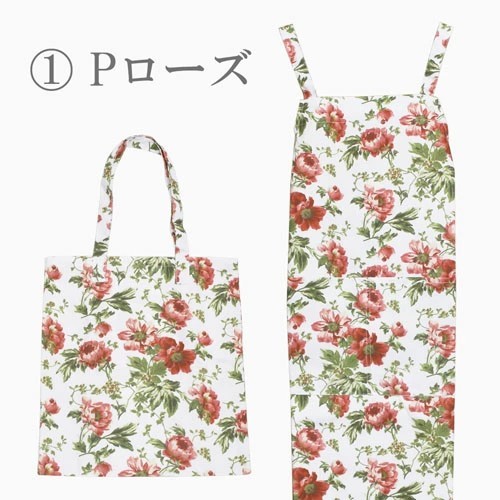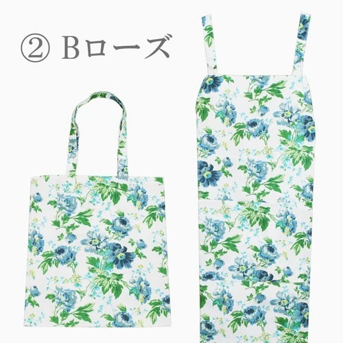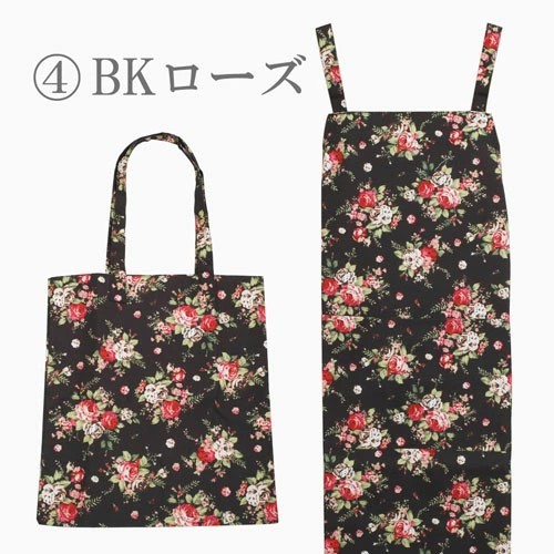 エプロン トートバッグ バッグ セット 花柄 バラ柄 ローズ レッド ブルー グリーン ブラック 6603-AK26