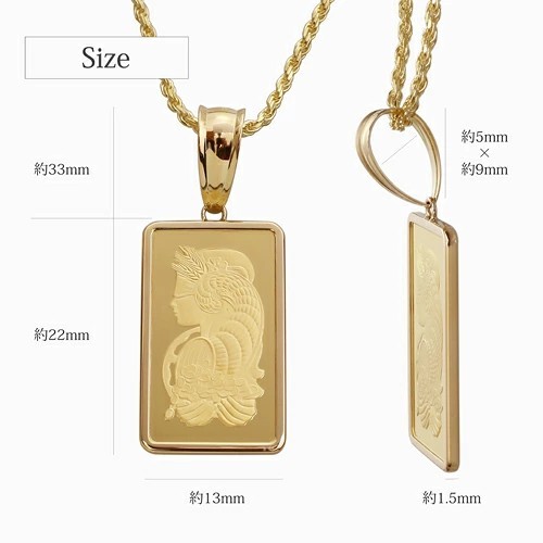| 素材 | ・インゴット(24金 約5g) ・枠/バチカン(18金) ・チェーン(SV925 ゴールド仕上げ) |